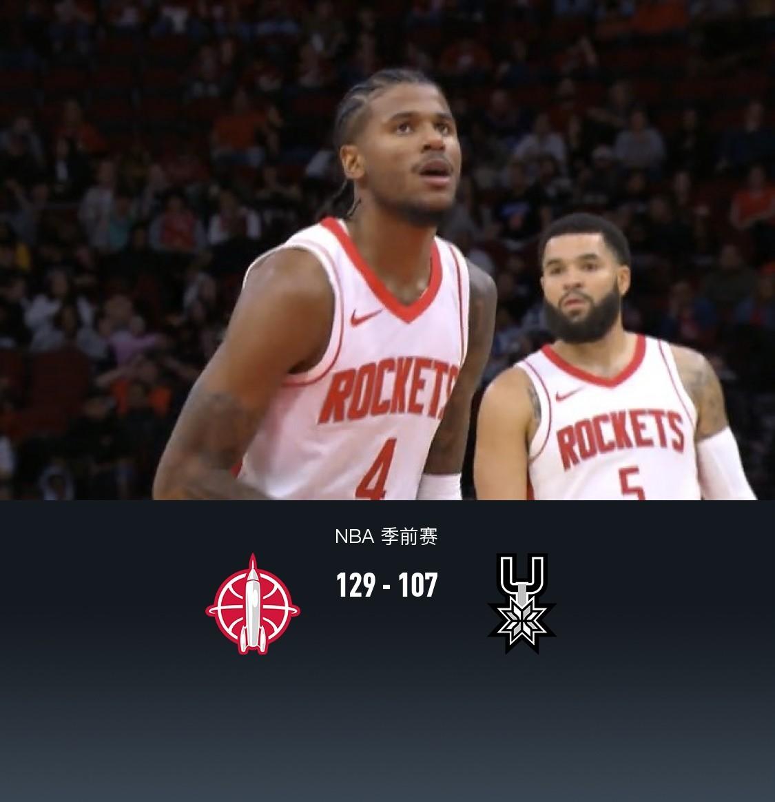 第四节火箭申京拿下7分,马刺西索科拿下10分,最终火箭129-107战胜马刺