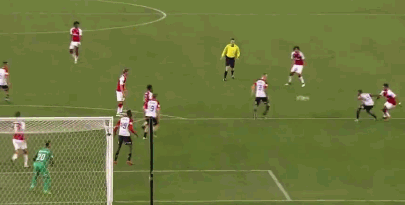 上半场最后时刻,阿森纳并未就此松懈,角球罚至禁区,伊沃比背身将球做给埃尔内尼,后者劲射破门,3-0!