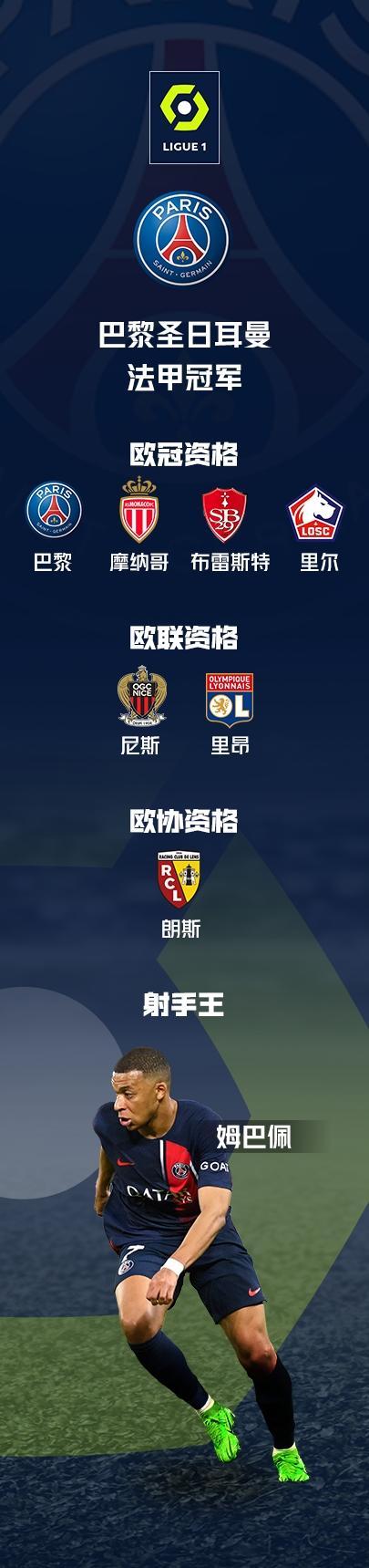 直播吧5月20日讯 今日法甲最后一轮战罢,23/24赛季法甲正式收官。巴黎法甲三连冠,摩纳哥亚军。