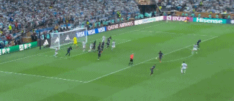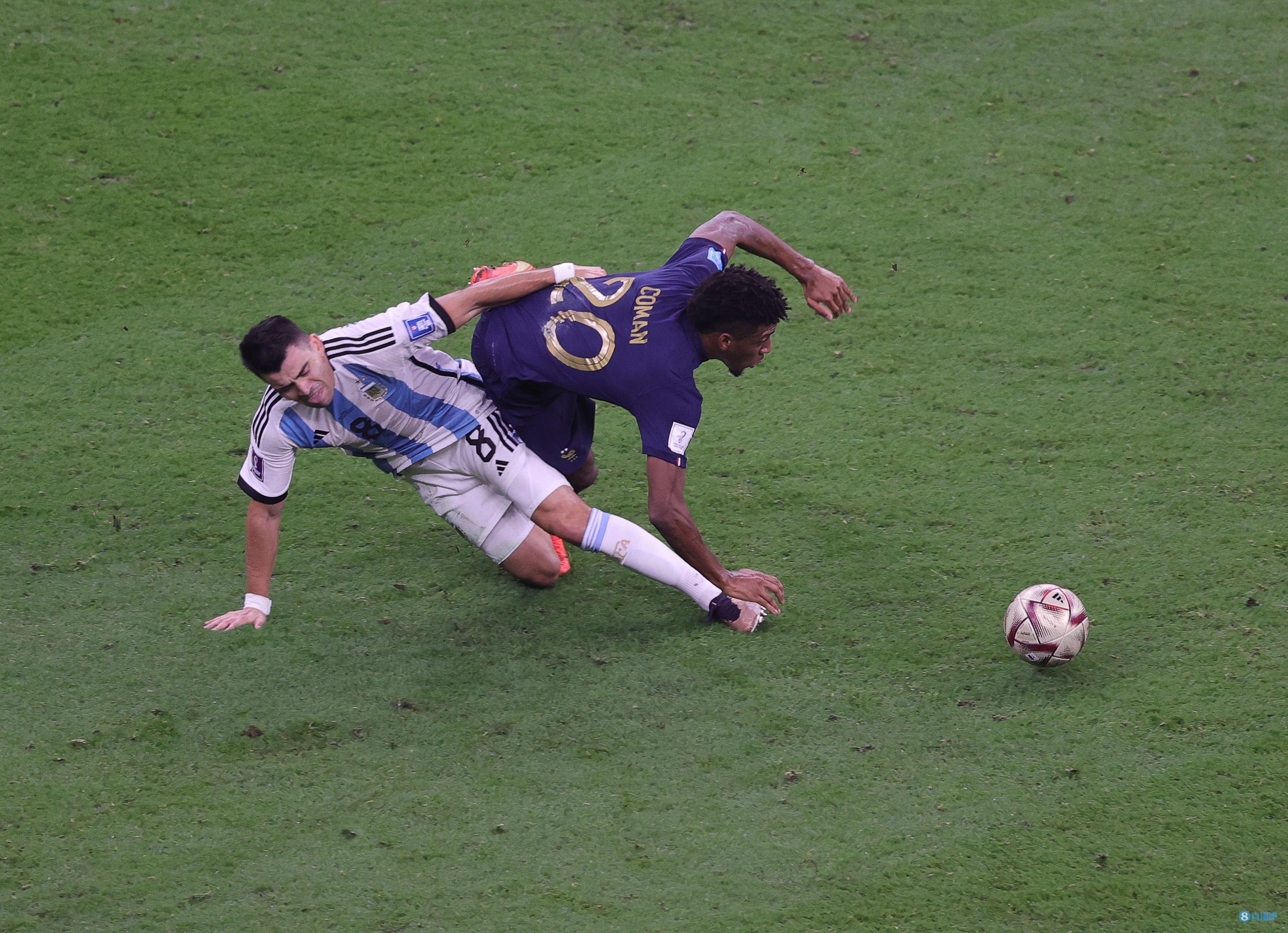 比赛下半场补时最后一分钟(第90+8分钟),阿根廷角球进攻无果,法国队反击机会,科曼带球被阿库尼亚铲倒,科曼随即爬起,准备继续进攻,但主裁没有按进攻有利原则让比赛继续进行,而是当即就已吹哨,给阿库尼亚出示黄牌,科曼的快发任意球也无效。