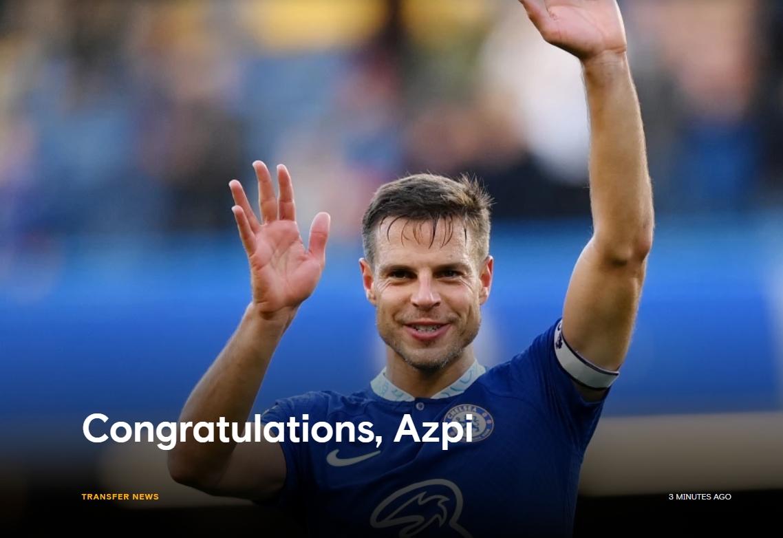 阿兹皮利奎塔是一名真正的领袖和榜样,体现了蓝军的必胜精神,斯坦福桥将永远是他的家,祝愿他在生活的新阶段一切顺利!
