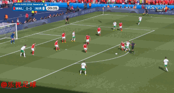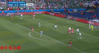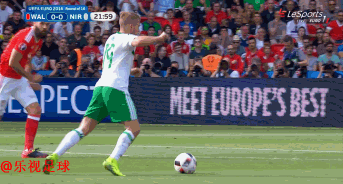 第10分钟,北爱尔兰第一次威胁了威尔士的大门。球队沿右路进球,球到右侧底线后回传,中路接应的队友再横穿,达拉斯在禁区前沿得球一脚怒射势大力沉,亨尼西飞身将球扑出底线。