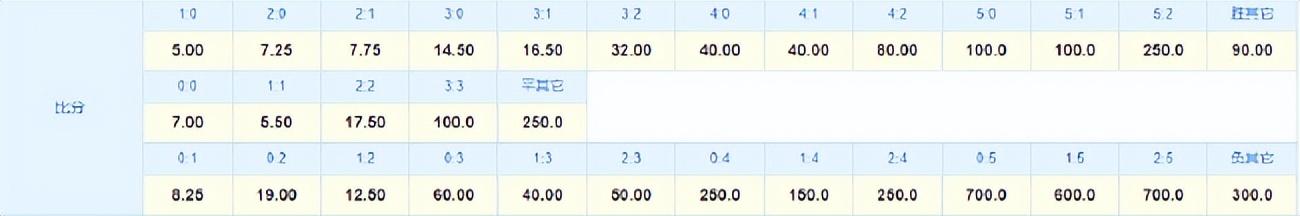 竞彩比分赔率