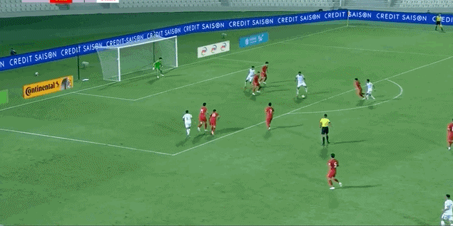 补时阶段,颜骏凌在禁区内救险,封出了对手的威胁攻门,助国足以1-0领先结束上半时。
