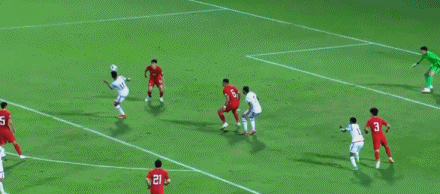 背水一战的国足一开始就展现出斗志,就如李铁赛前发布会所说,全队都已经为比赛准备好了——前四场比赛,国足上半场没有进球,这个尴尬也在第21分钟被打破: