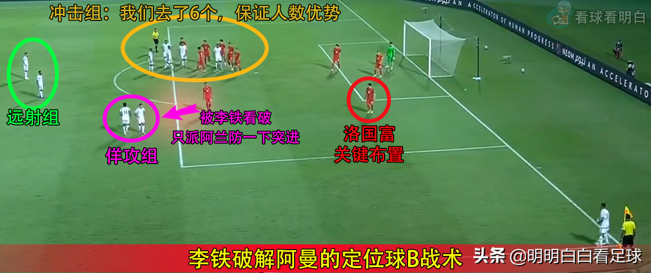 虽然整体布置没问题,但因为我们对抗弱,没争到二点球,如果没有洛国富这一手安排,阿曼这个定位球可能就进了。