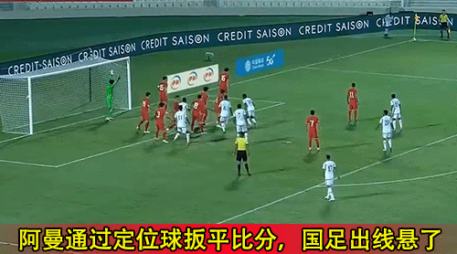 阿曼队头球扳平比分。