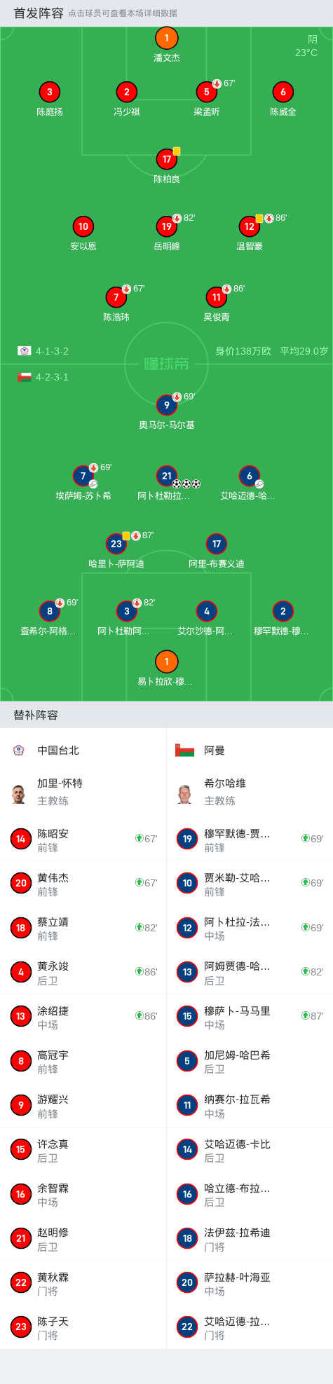 阿曼首发阵容