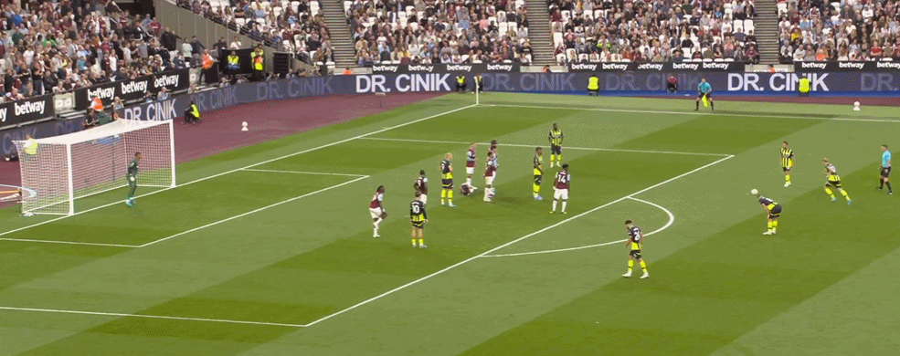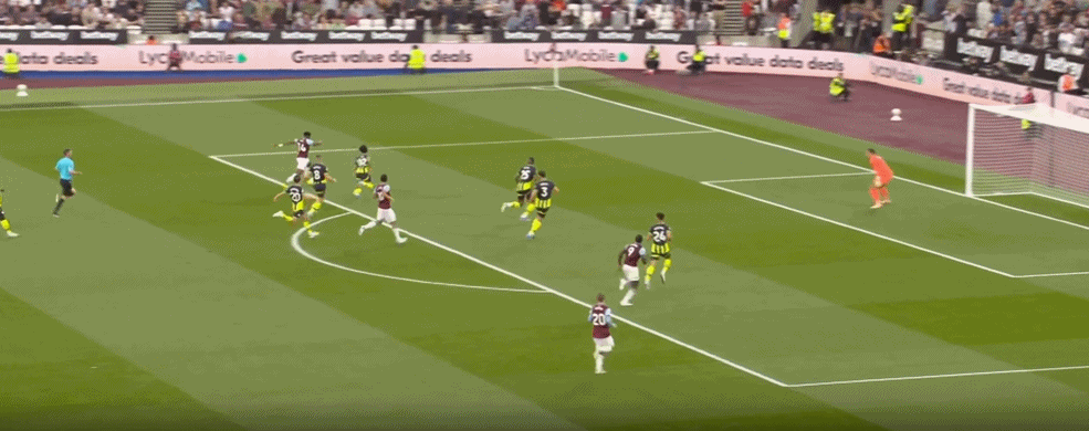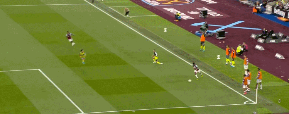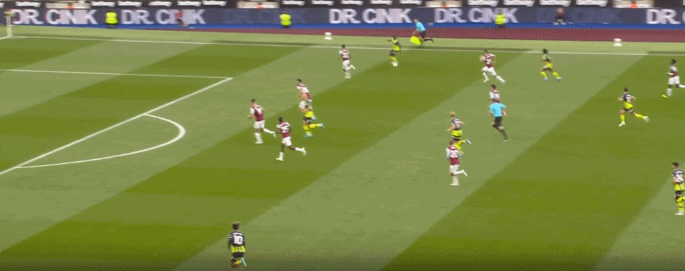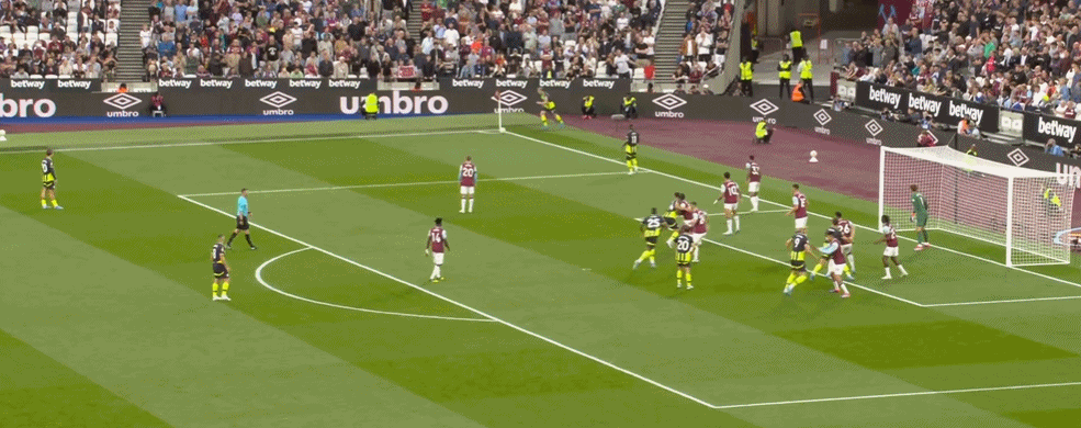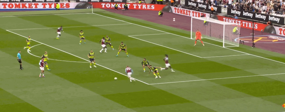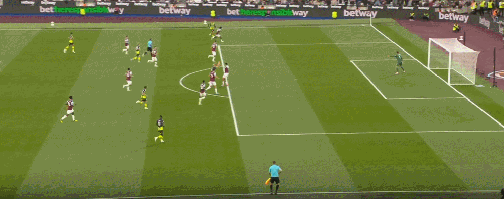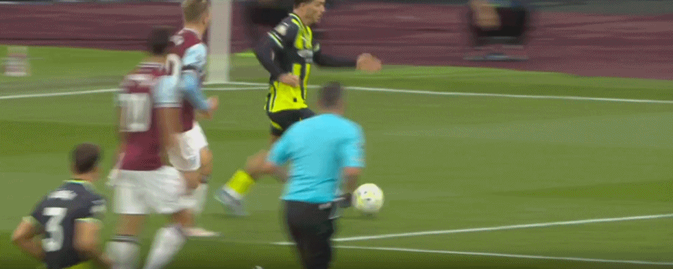 第19分钟,鲍恩右路传中,鲁本-迪亚斯将球碰进自家球门!西汉姆联1-1