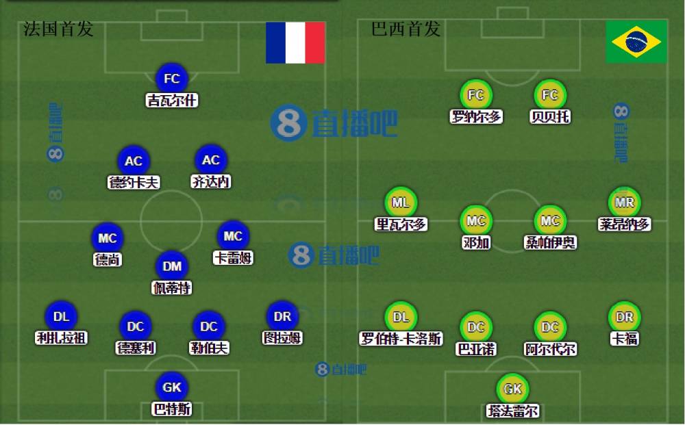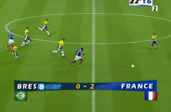上半场比赛结束,法国由齐达内的两次角球抢点头球2-0巴西,已然胜券在握。