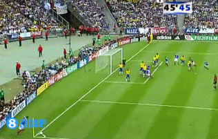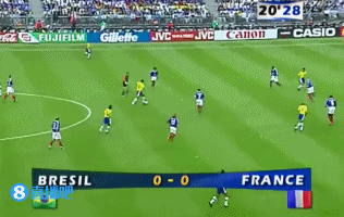 吉瓦单刀被扑出底线,法国队因此获得连环角,46分钟,德约卡夫左侧角球开出,还是禁区前点,齐达内再次抢点头球入网,梅开二度,法国2-0领先巴西!↓