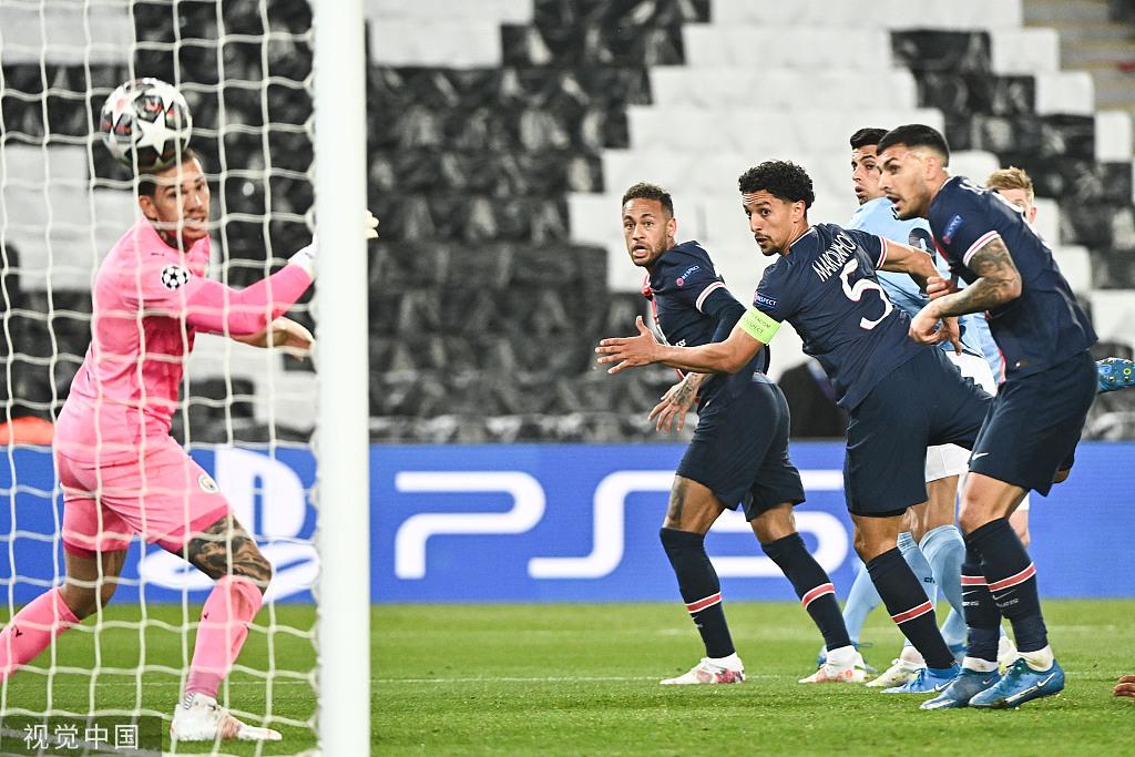 此后大巴黎连续的角球轰炸,让曼城防线风雨飘摇。第28分钟巴黎故技重施,只不过这一次帕雷德斯的头球偏出。