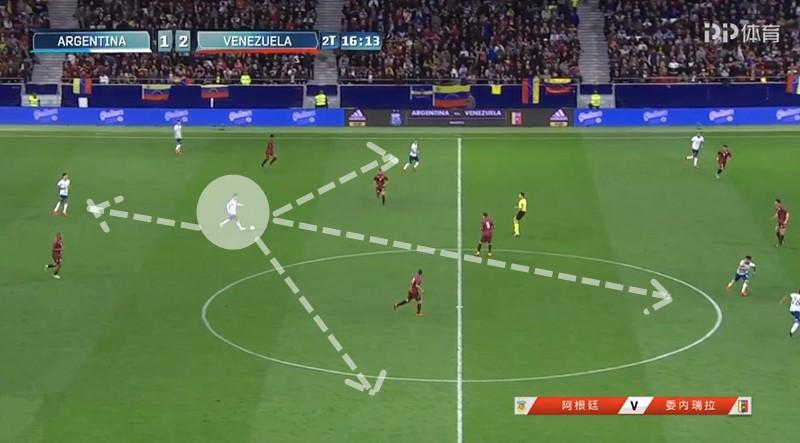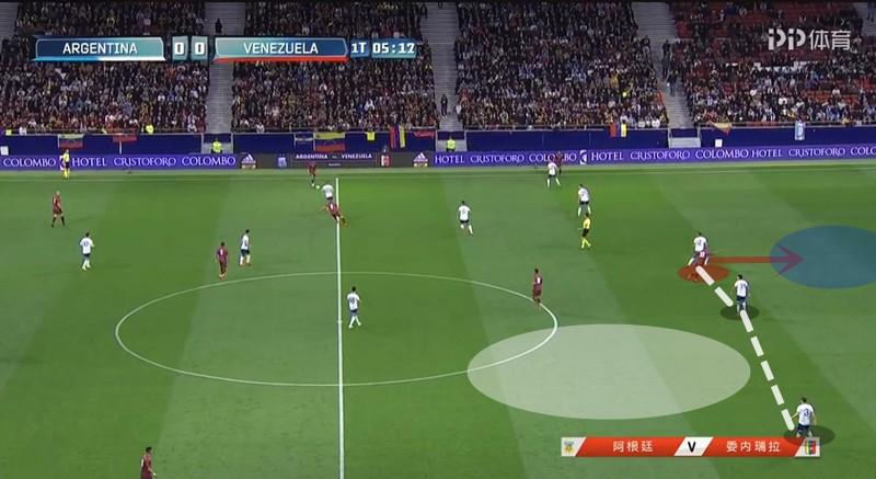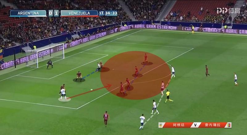 阿根廷之所以在上半场频频被打反击,和委内瑞拉坚定的中路囤积防守战术有比较大的关系。