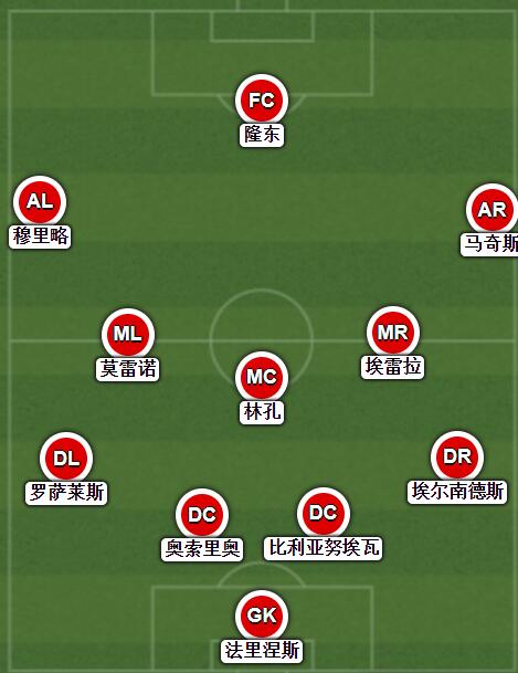 替补未出场:12-穆索、23-鲁利、2-夸尔塔、4-福伊特、14-帕拉西奥斯、17-奥坎波斯、9-阿尔瓦雷斯、20-兰奇尼