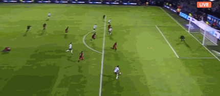 第40分钟,马奇斯过人后被对方放倒,裁判根据进攻有利未吹停比赛,插上的埃尔南德斯传中找到后点的隆东,后者头球攻门划着立柱出了底线!