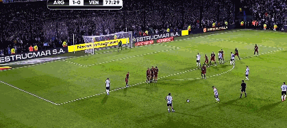 比赛第77分钟,梅西又一次直接任意球的好机会,打球门右下角,稍稍偏出。