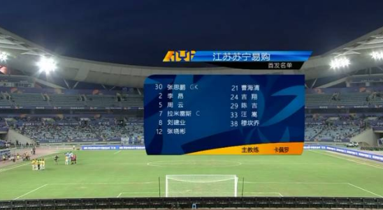 江苏苏宁首发阵容:30-张思鹏;5-周云、2-李昂、39-杨博宇、21-曹海清;7-拉米雷斯、8-刘建业、16-高天意(U23)、24-吉翔、10-特谢拉;9-马丁内斯