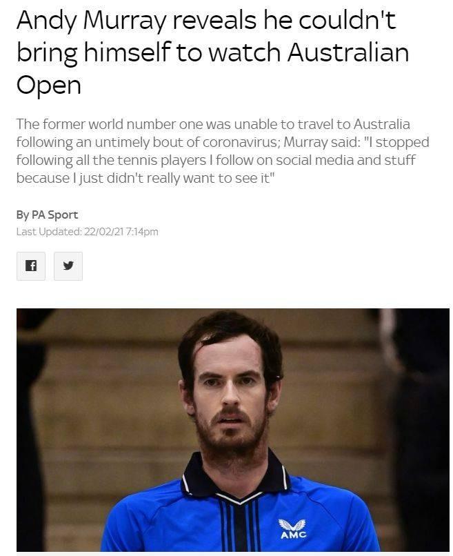 北京时间2月24日讯 穆雷因感染新冠无奈退出今年澳网,穆雷接受采访透露自己没心情看澳网决战,不过看了一下比赛集锦,谈到德约横扫梅德韦杰夫夺冠,穆雷直言年轻一代表现太弱,如果德约去年美网不冲动的话,蒂姆想夺冠也是没戏。