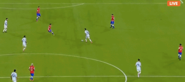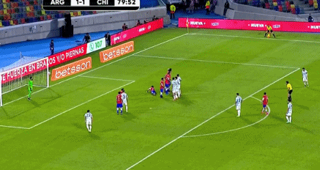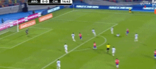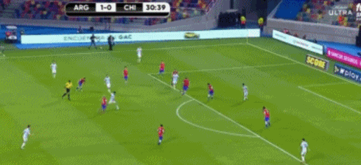 比赛第80分钟,智利右路送出精准传中,布里尔顿近在咫尺的头球被挡出后,智利外围的一脚射门被阿根廷三名球员倒地封堵。最终,下半场比赛阿根廷众将众志成城,守下了一场胜利,全取三分。