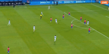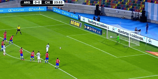 第90+5分钟,智利获得任意球机会,桑切斯主罚直接攻门,球被门将马丁内斯没收。