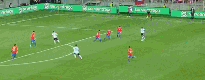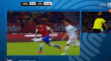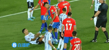 第68分钟,智利准备开右路角球时,双方在禁区内拼抢发生冲突,有一名阿根廷球员被推倒在地,主裁判向马里潘出示一张黄牌。↓