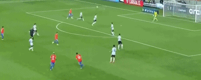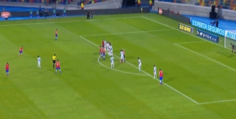 第36分钟,智利利用前场定位球机会扳平比分,阿朗吉斯将球挑向后点,梅德尔倒地将球扫至中路,桑切斯门前包抄破门,智利1-1阿根廷。