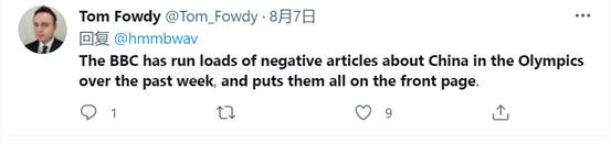 “过去一周,BBC发布了大量关于中国在奥运会的负面文章,还把它们全部放在头版。”