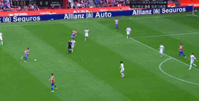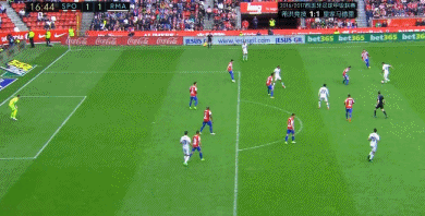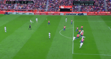 第45分钟,J罗右路接伊斯科长传后起球传中,但被防守球员解围出禁区。