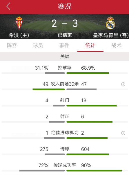 本场比赛皇马进攻表现十分出色,但后防暴露出的问题也不少,希洪将仅有的两次射正都转化为了进球,可见效率之高效。