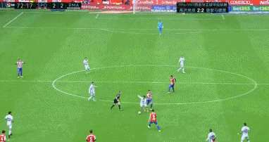 常规时间最后一分钟,皇马再入一球反超对手,伊斯科禁区线上一记低平球远射洞穿希洪防线一记奎利亚尔把守的大门,2-3!