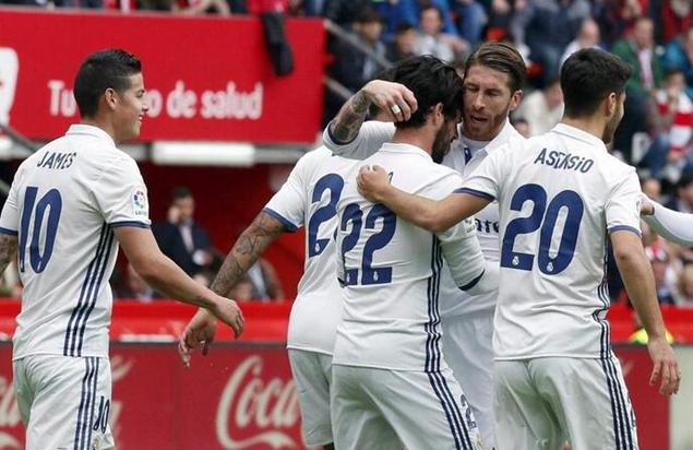 虎扑足球4月15日讯 北京时间4月15日22:15,西甲第32轮皇家马德里远赴大磨坊球场客战希洪竞技。上半场,科普接维斯嘉挑传打入一球,随后伊斯科禁区内连过两人后兜射破门扳平比分;下半场维斯嘉破门助希洪再度领先,莫拉塔随后头球扳平比分,常规时间最后一分钟,伊斯科远射献绝杀。最终皇马3-2客胜希洪。赛后,领头羊皇家马德里凭借此场胜利继续领跑,暂积73分位列榜首超次席的巴塞罗那6分,而希洪竞技积22分暂列倒数第三。