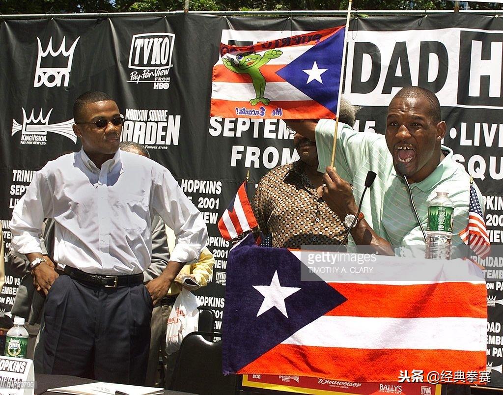 2001年9月29日,地点纽约的麦迪逊广场花园,WBC/IBF双料中量级冠军伯纳德·霍普金斯对战WBA中量级不败冠军菲利克斯·特立尼达德(40-0,33kos)这是一场三条金腰带之争胜者将成为自马文·哈格勒之后第一个无可争议的中量级冠军。