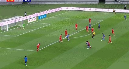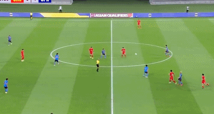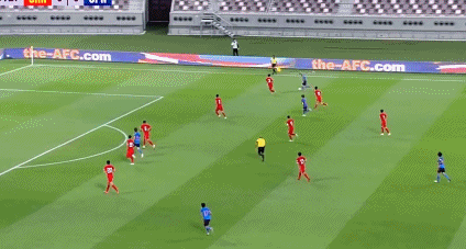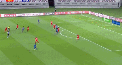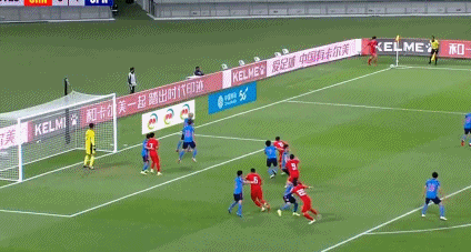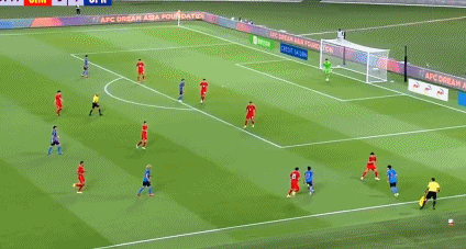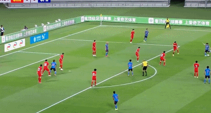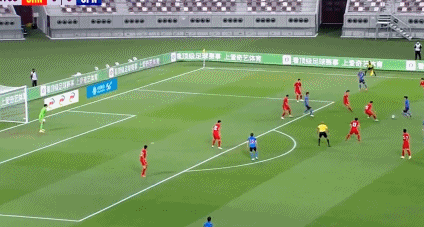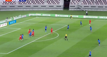 第54分钟,国足中场转移,王刚一对一高速突破传中获得角球机会。国足角球二次进攻形成威胁,李昂传中,吴曦头球攻门稍稍偏出。