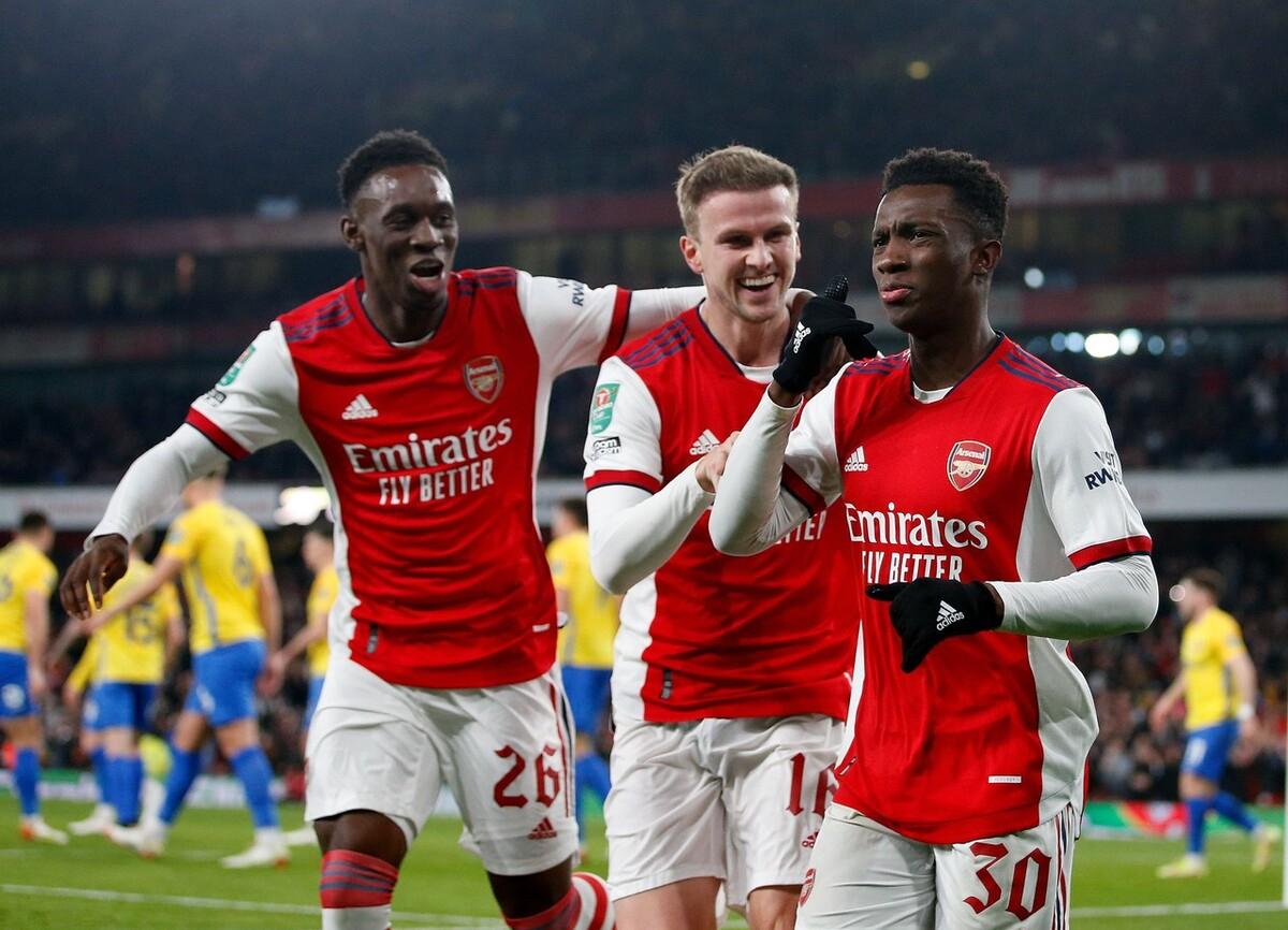 北京时间12月22日03:45,2021-22赛季英联杯1/4决赛,阿森纳主场迎战百年老牌桑德兰。上半场,恩凯蒂亚、佩佩连下两城,布罗德黑德建功;下半场,恩凯蒂亚再入两球,查理 ·帕力诺锦上添花。最终,阿森纳5-1轻取桑德兰,时隔4年重返联赛杯半决赛。