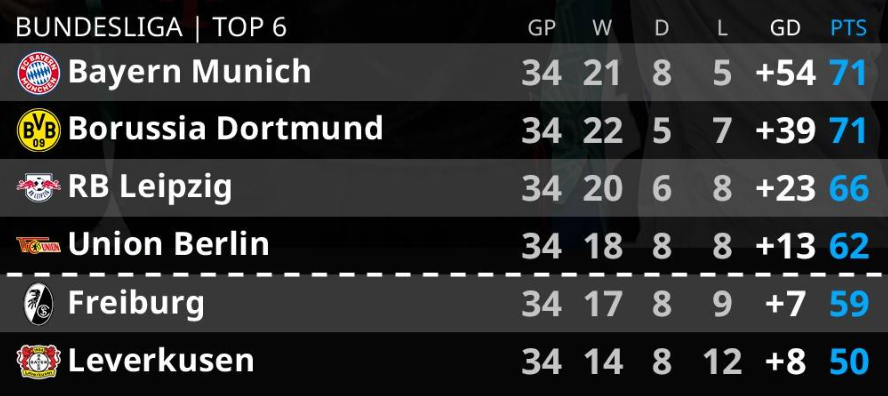 全场战罢,最终多特主场2-2战平美因茨,两队各取一分。另一场比赛,拜仁慕尼黑客场2-1击败科隆,成功拿下3分。22-23赛季德甲34轮比赛全部战罢,拜仁与多特同积71分,但以净胜球优势高居榜首!