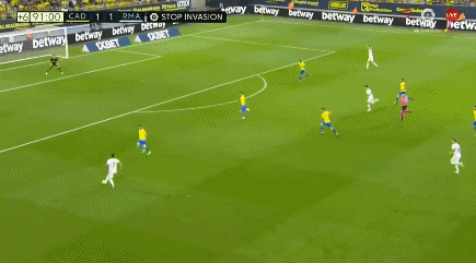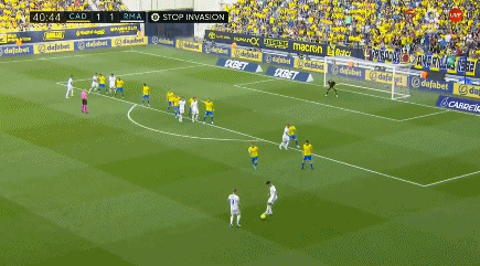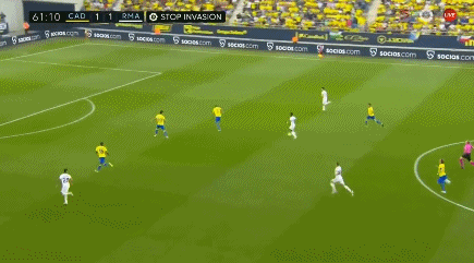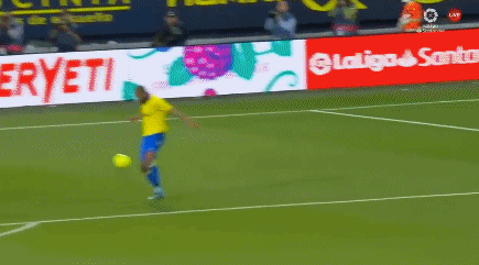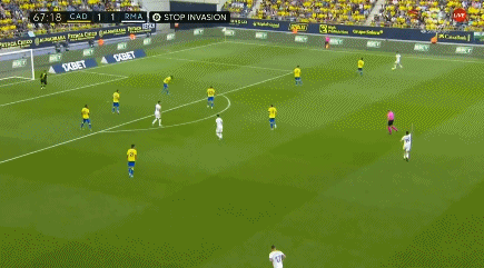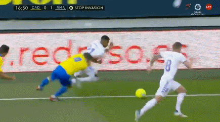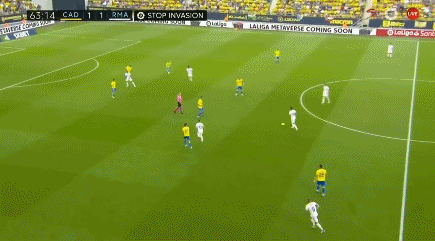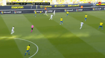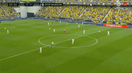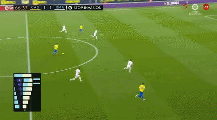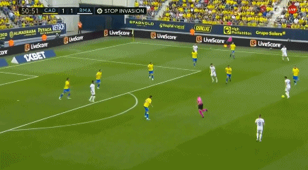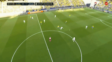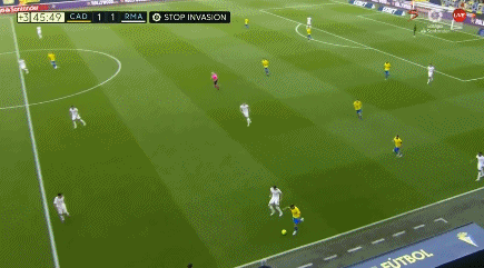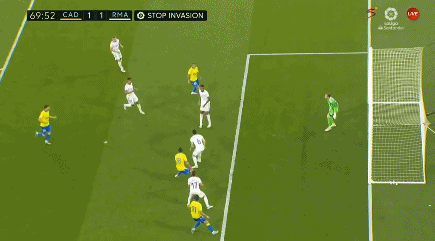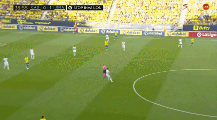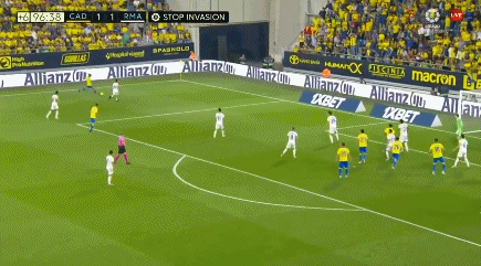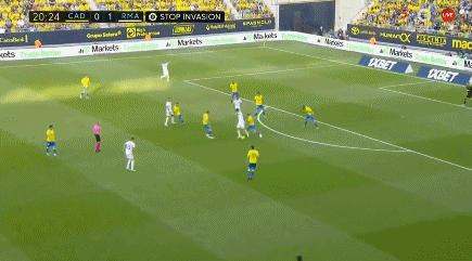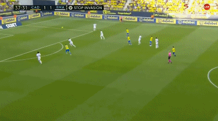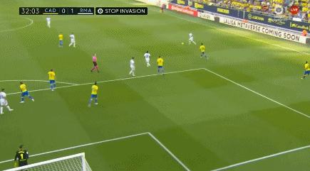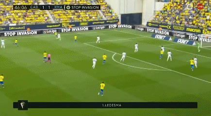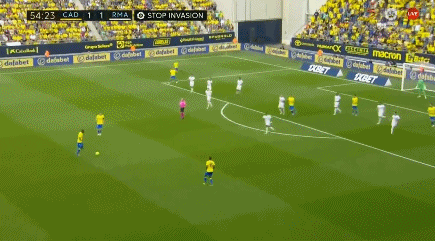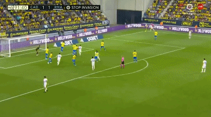 上半场补时第1分钟,加的斯左路直传打穿皇马防线,米利唐意外倒地摔倒,卢卡斯-佩雷斯突入禁区后低平球传向后点,可惜没能与内格雷多形成连线。