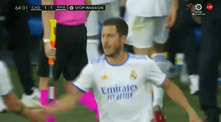 下半场补时第3分钟,阿扎尔主罚右侧角球传中,拉塔萨头球攻门高出横梁。