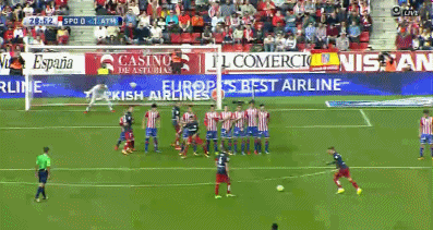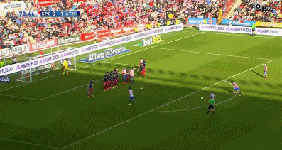马竞反而在第28分钟率先利用任意球破门。27分钟,萨乌被阿尔瓦雷斯铲倒,马竞赢得一个位置极好的前场任意球。格里兹曼一脚射门直挂死角,球从横梁与右侧立柱的交界处飞了进球,希洪竞技门将对此球可谓毫无办法。马竞全场第一脚射门便取得了1比0的领先。