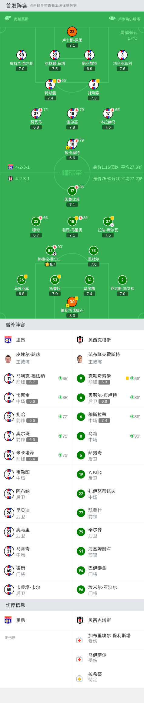 欧联杯 里昂VS贝西克塔斯