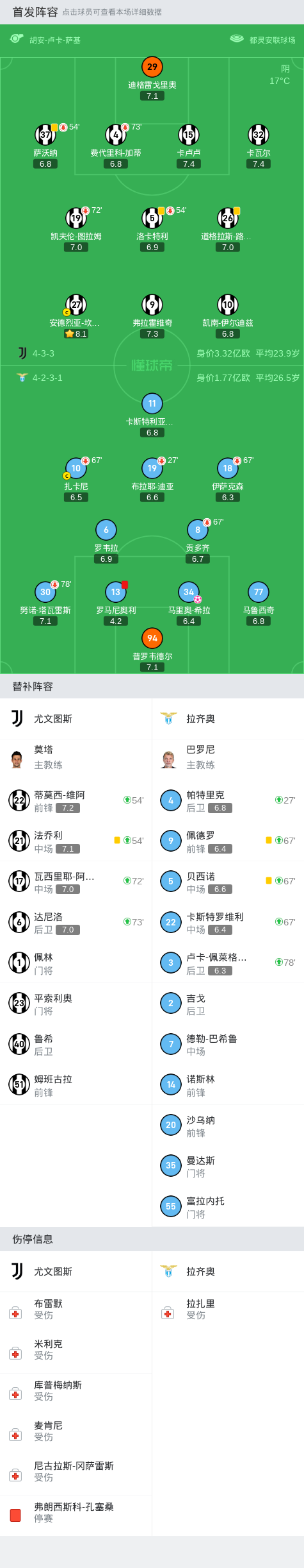 北京时间10月20日意大利足球顶级联赛 联赛 第8轮,尤文图斯主场对阵拉齐奥。半场战罢,场上比分尤文 0- 0 拉齐奥。