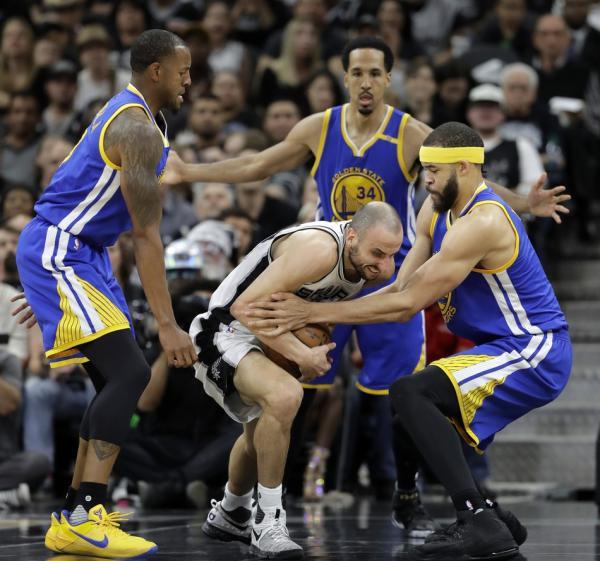 整场比赛,马刺队只能依靠即将年满40岁的老将吉诺比利苦苦支撑,他得到15分7助攻3抢断。在强大的勇士队一边,杜兰特得到29分12个篮板,库里则砍下36分。