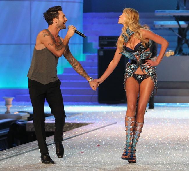 而2011年维密秀,Maroon 5作为表演嘉宾,主唱Adam Levine 看到女友 Anne Vyalitsyna 走出来,不由自主的走上前吻了一下,现场演绎Look into my eyes and l' ll own you ,令全场沸腾。