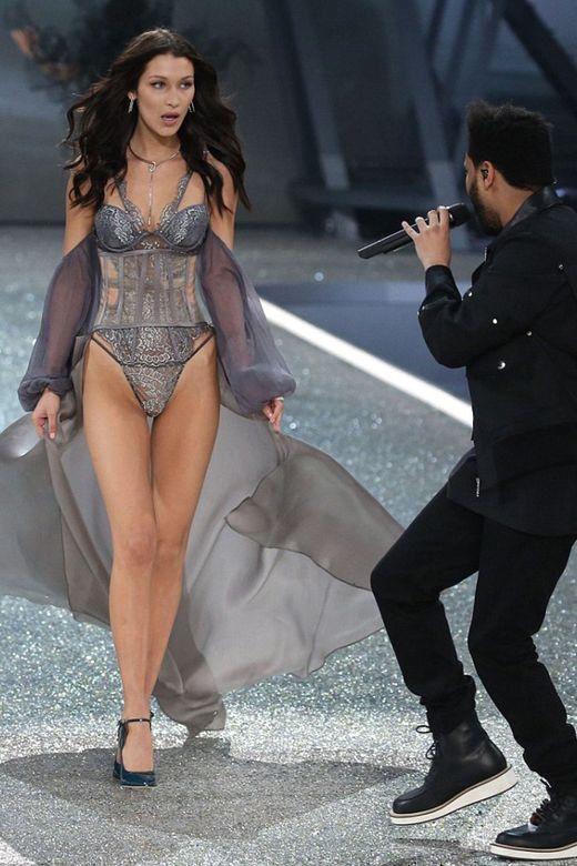2016年第一次登上维密的Bella Hadid 与前男友盆栽哥The Weeknd 狭路相逢,出场时Bella面带微笑,盆栽哥见状马上迎上去互动,不过当两人越走越近,越走越近时Bella摆出一副(别碰我)Don't touch me 的表情,最后实在忍不住,还送出了一副what are you 弄啥嘞的表情包,当时的场面又尴尬又好笑。