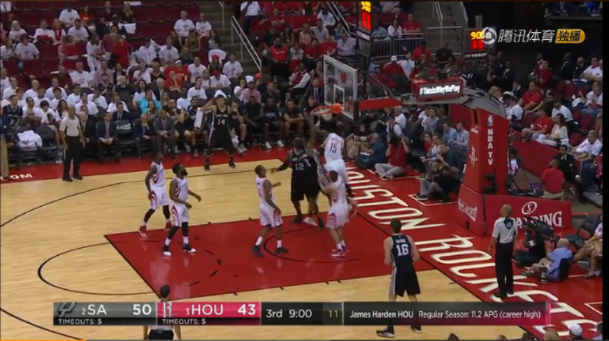 这球扣进后,火箭主场鸦雀无声,镜头里甚至看到坐在众多火箭球迷中的一位马刺球迷腾的跳了起来,虽然迫于礼节更多迫于暴力迅速坐了回去,但那一刻火箭主场的气氛凝固了。有来有回才是经典,接下来哈登就告诉你为什么不拿三双也能问鼎MVP。哈登下一球自己带球过半场,绕过弧顶的阿尔德里奇(看看阿尔德里奇这个位置吧,被带到弧顶了)加速一条龙,面对老家嫂,完成一记暴扣,这一扣让全场火箭球迷沸腾。(很想看看那个孤独的马刺球迷在干什么可镜头没给)同学们,你没有看错!千年不遇的时刻你终于抓住了!习惯了大胡子靠一分球或者三分球来度过关键时刻的火箭球迷们是不是跳起来了?这是暴扣啊!这是恨不得躺着打球的超级地板流选手哈登的一记飙分暴扣啊!我的天啊,这球需要太多条件了啊,首先马刺气势如虹,火箭急需提升士气,有什么比暴扣更提升士气?其次防守端必须是无法高空作业的老老老家嫂,年情一点就是好帽啊。专业背景帝的衬托,才会让这球像之前家嫂被别人扣的几十个球一样精彩夺目。