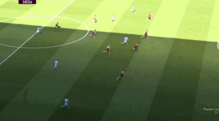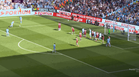 第66分钟,曼城禁区左侧倒三角回传,哈兰德包抄射门被祖马用身体封堵。第74分钟,曼城获得禁区前偏左位置的任意球,福登主罚直接射门,皮球绕过人墙后击中边网。
