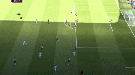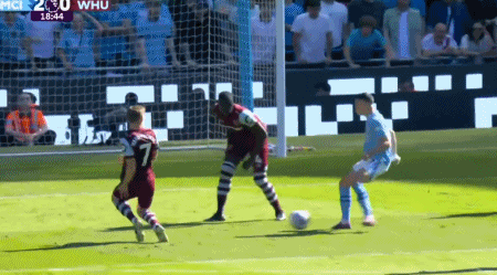 第17分钟,德布劳内护球从右侧底线前往回盘带随后回传,前插的罗德里接球推射,皮球稍稍打偏。第18分钟,刚刚被评为英超赛季最佳球员的福登前插到禁区中路,在点球点附近接到左侧的横传推射破门,曼城2-0西汉姆联。