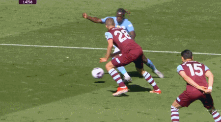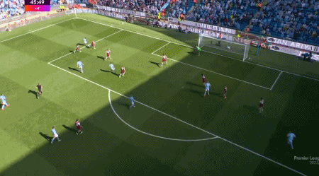 第27分钟,德布劳内在禁区线上右脚兜射,阿雷奥拉侧身将球扑出底线。第31分钟,哈兰德单刀射门被阿雷奥拉扑出,他也越位在先。第43分钟,西汉姆联左侧角球开到禁区,一片乱战中库杜斯倒钩将球打进,西汉姆联1-2曼城。