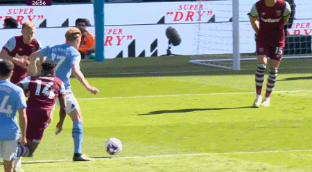下半场易边再战,第49分钟,福登在禁区内带球被破坏,跟上的德布劳内得球左脚远射,皮球偏出立柱。第60分钟,德布劳内在禁区右侧横传,B席接球回做,跟上的罗德里右脚推射,阿雷奥拉扑了一下但皮球仍飞入球门,曼城3-1西汉姆联。