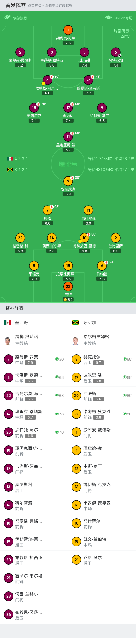 直播吧06月23日讯 美洲杯小组赛,墨西哥VS牙买加。