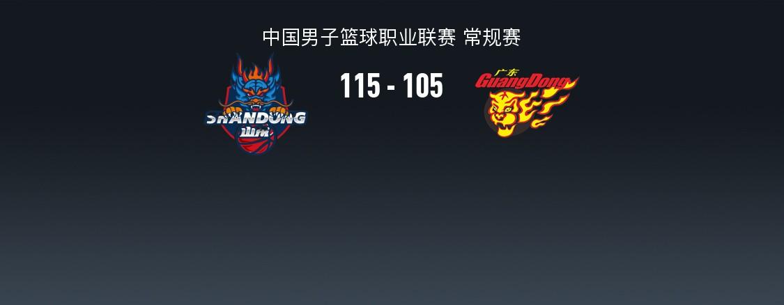 第四节山东陈培东拿下11分,广东任骏飞拿下10分,最终山东115-105战胜广东